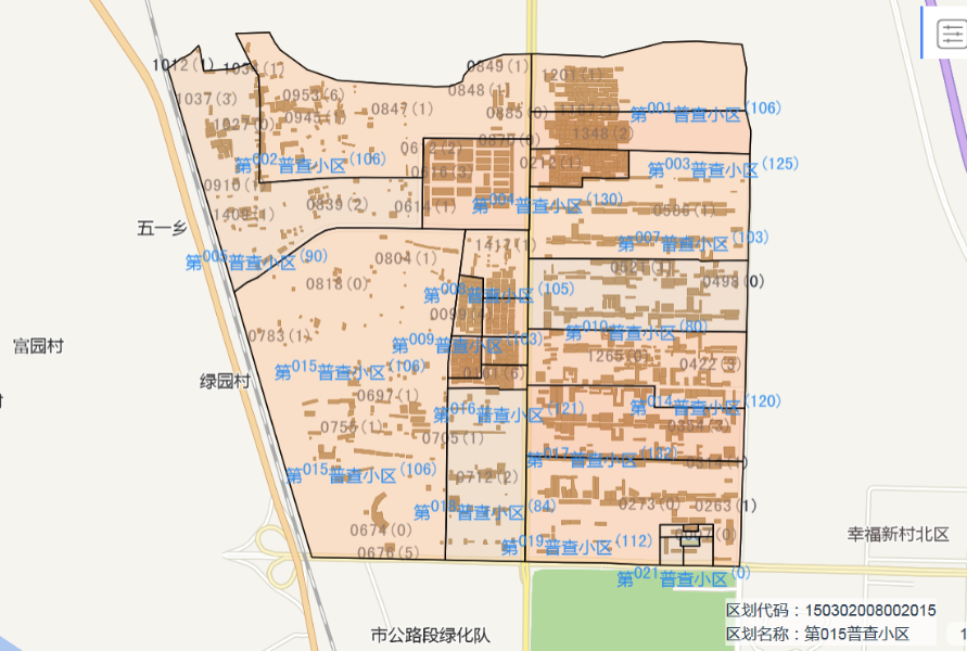 普查小区划分就是在前期建筑物标绘的“有人居住单元”基础上,将普查区按照80户或250人左右的规模划分为若干普查小区。普查小区划分结果直接关系到普查指导员和普查员的工作任务量,也是后期各项普查工作的基础。