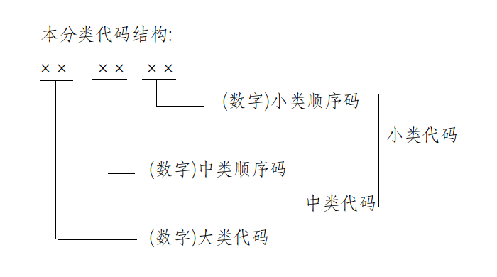 本分类采用线分类法和分层次编码方法,将数字经济活动划分为三层,分别用阿拉伯数字编码表示。第一层为大类,用2位数字表示,共有5个大类;第二层为中类,用4位数字表示,共有32个中类;第三层为小类,用6位数字表示,共有156个小类。