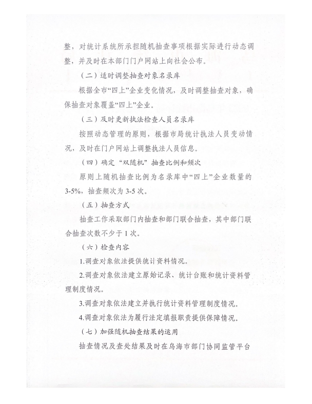 2023年乌海市统计局“双随机、一公开”工作抽查计划