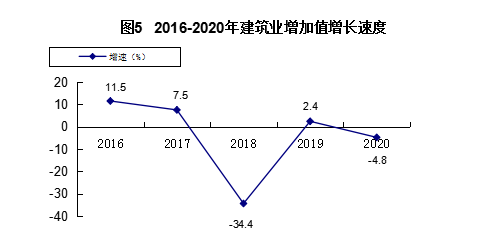 全年资质以上建筑施工企业42家,建筑业增加值比上年下降4.8%。